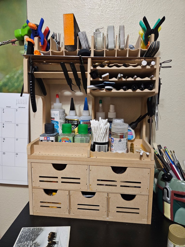 I also upgraded the tool station with a couple of the stackable pieces from Bucasso. These modular units are fairly well constructed, and hold my assortments of tools quite well. Happy with the result.
