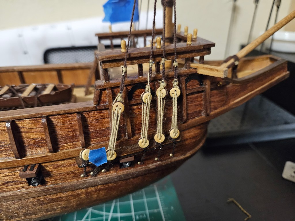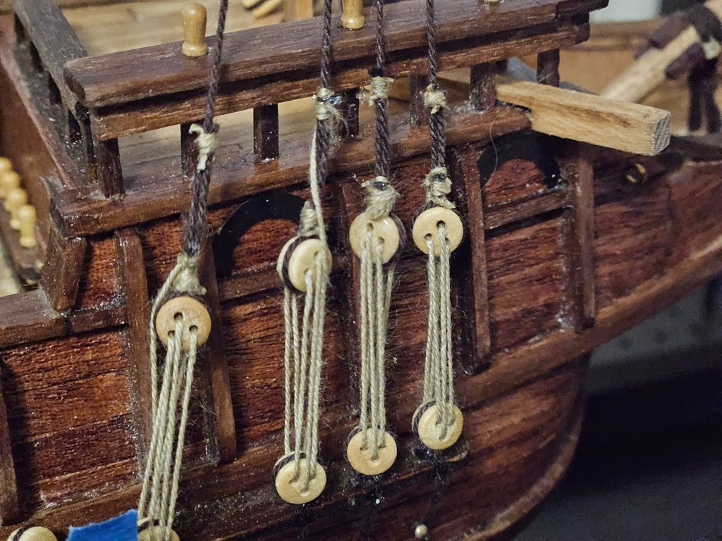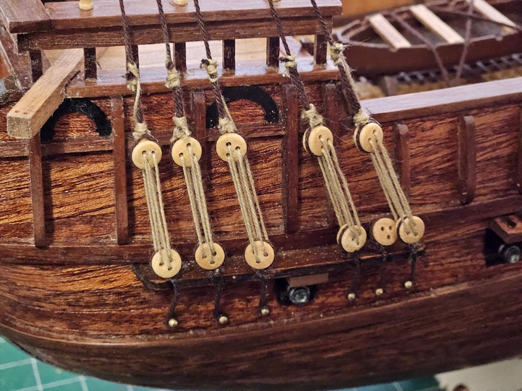 My third goal for this build was to approach the rigging more realistically, or at least as realistic as I can given my experience and the nature of 16th century ships. Once I got a hang of the seizing knot, they made the deadeyes really pop. Certainly not perfect, but I took my time, despite some of the knots wanting to bundle up.