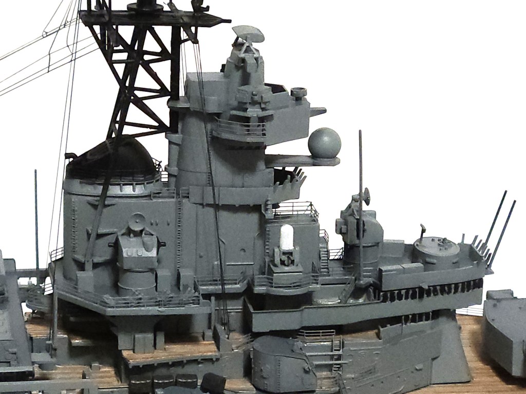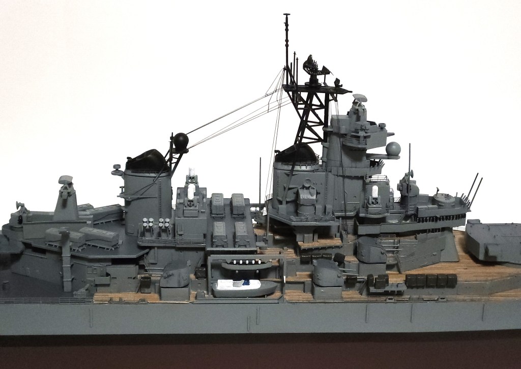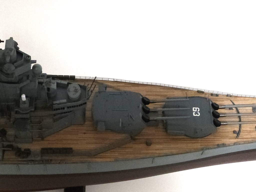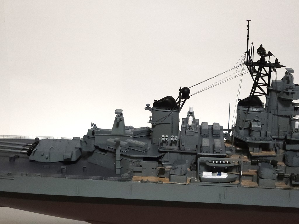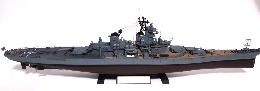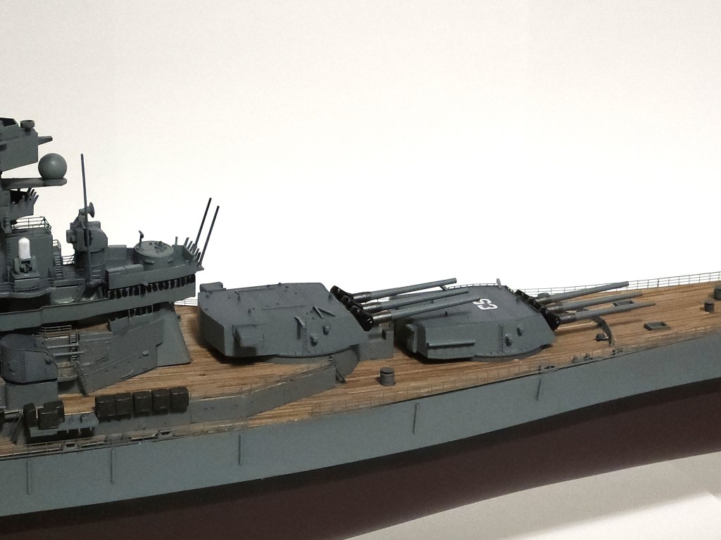 In the end, it came together. The brass 16″ main guns really stand out, in addition to the wooden decks. I learned quite a lot with this build.